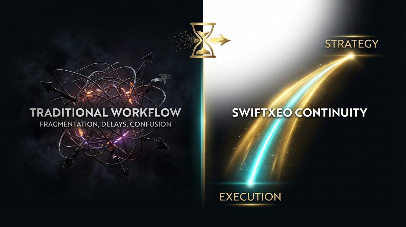 In a traditional workflow, a strategic pivot involves a cascade of briefings, emails, and meetings. In a SwiftXEO-enabled environment, the workflow is instantaneous and Multimodal.